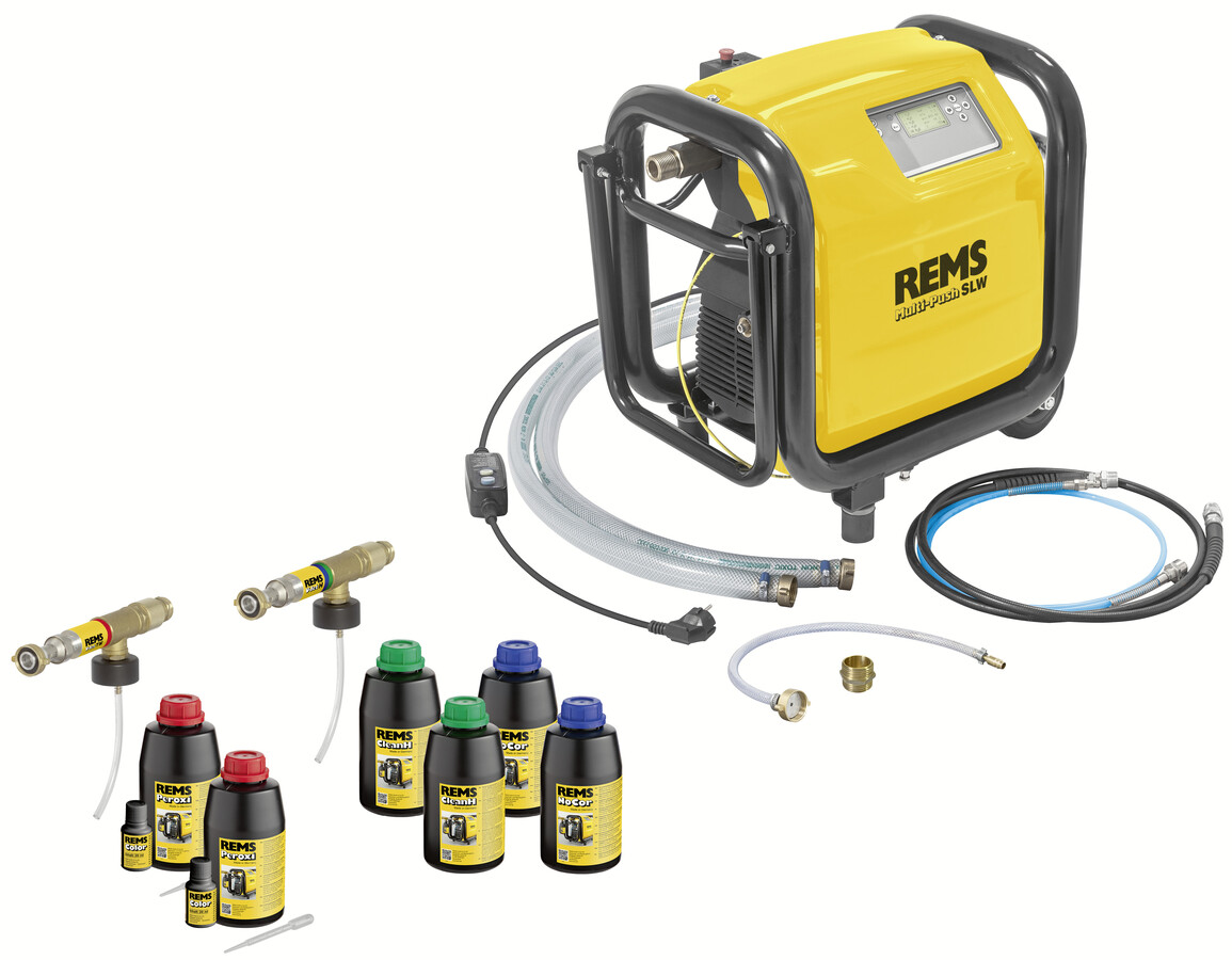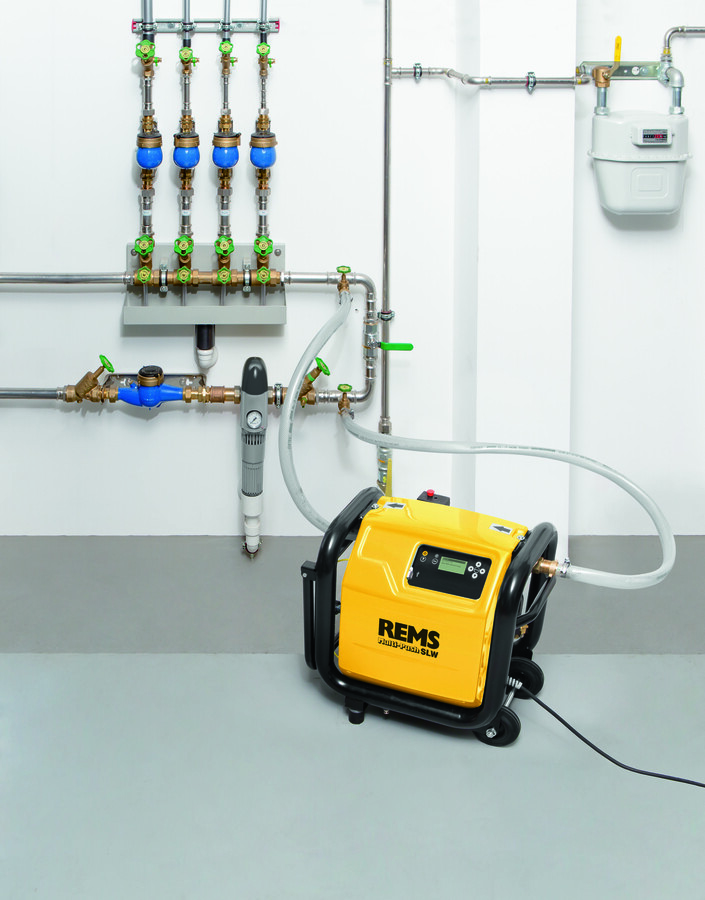 REMS Multi-Push je spolehlivý a efektivní pomocník pro instalatéry, kterým výrazně zjednoduší, zkvalitní a urychlí práci při čištění a proplachování trubek, odkalování radiátorů a plošných topných systémů, při tlakových zkouškách i revizi potrubí.
